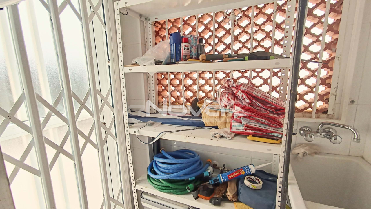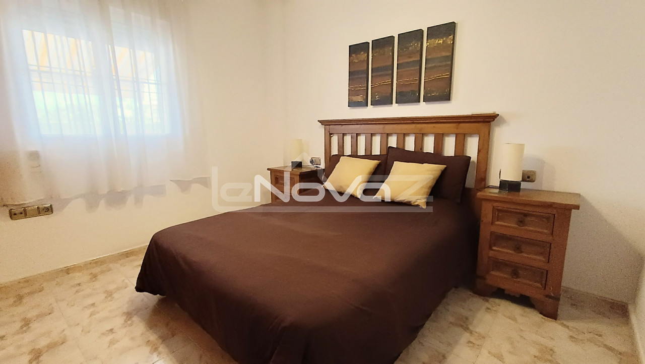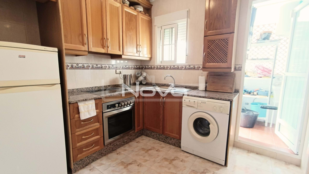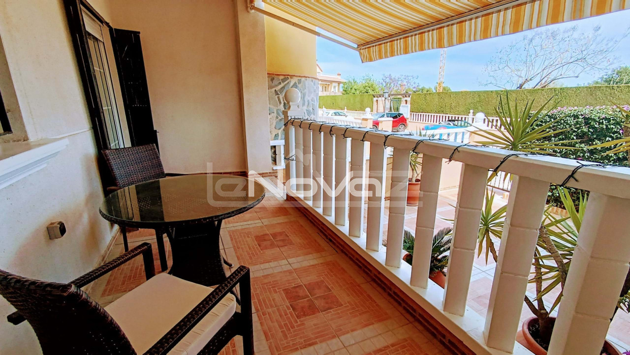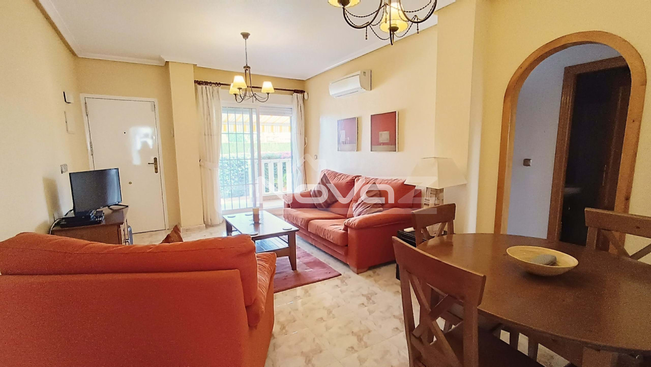We are delighted to present this ideal oasis within this ground-floor apartment, situated in the heart of Lomas de Cabo Roig. Only a short stroll from two vibrant hubs, a short drive from the nearest beachfront as well as being surrounded by the stunning countryside of Orihuela Costa. Step into serenity as you enter through a welcoming low-maintenance garden, leading to a spacious front terrace, perfect for unwinding in your outdoor sanctuary. As you step inside, natural light dances through the airy living and dining area, enhanced by the comfort of air conditioning. The large sliding door beckons you to the front terrace, seamlessly blending indoor-outdoor living. Adjacent, a fully-fitted kitchen awaits, complete with a fridge freezer, offering convenience and functionality. A utility room, housing the boiler and equipped with a sink, provides additional practicality, with access to the back garden, offering potential parking space for residents. This haven features two double bedrooms, each adorned with fitted wardrobes, ensuring ample storage. These bedrooms share a newly renovated shower room, exuding elegance and comfort. Residents of this esteemed building enjoy exclusive access to a meticulously maintained communal pool, tucked away behind secure gates, providing a tranquil retreat for those sun-drenched days. Experience the epitome of relaxation and convenience in this immaculate abode, where every detail is crafted for refined living. Just 5 minutes by car is the La Zenia Boulevard Shopping Centre where you will find everything you need as well as all the services in the area. At the same distance is one of the most beautiful beaches on the Costa Blanca. And if you want to escape to the city of Alicante, in just 40 minutes you can be there and connect with other destinations thanks to its international airport, the AVE train station, and the bus station.