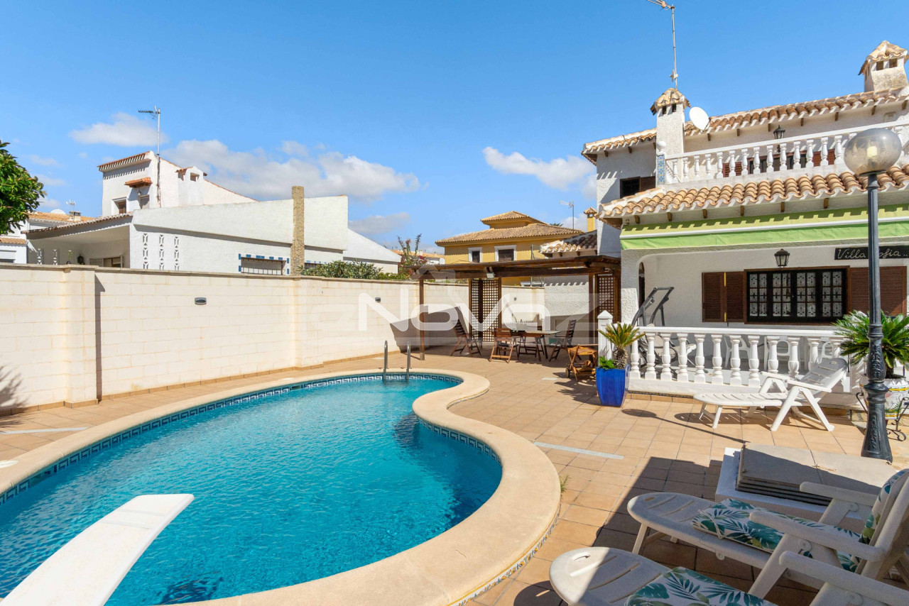 Just 400 metres from the large beach of La Zenia, one of the best sandy beaches on the Oriolana coast, very close to shopping, leisure and sports centres, municipal facilities, police, doctors, pharmacy, church and all the necessary services throughout the year. Excellently connected, very close to the bus stop and near the entrance to the AP-7 motorway where in less than 45 minutes you can be at Alicante or Murcia airport, is this wonderful classic Mediterranean villa.