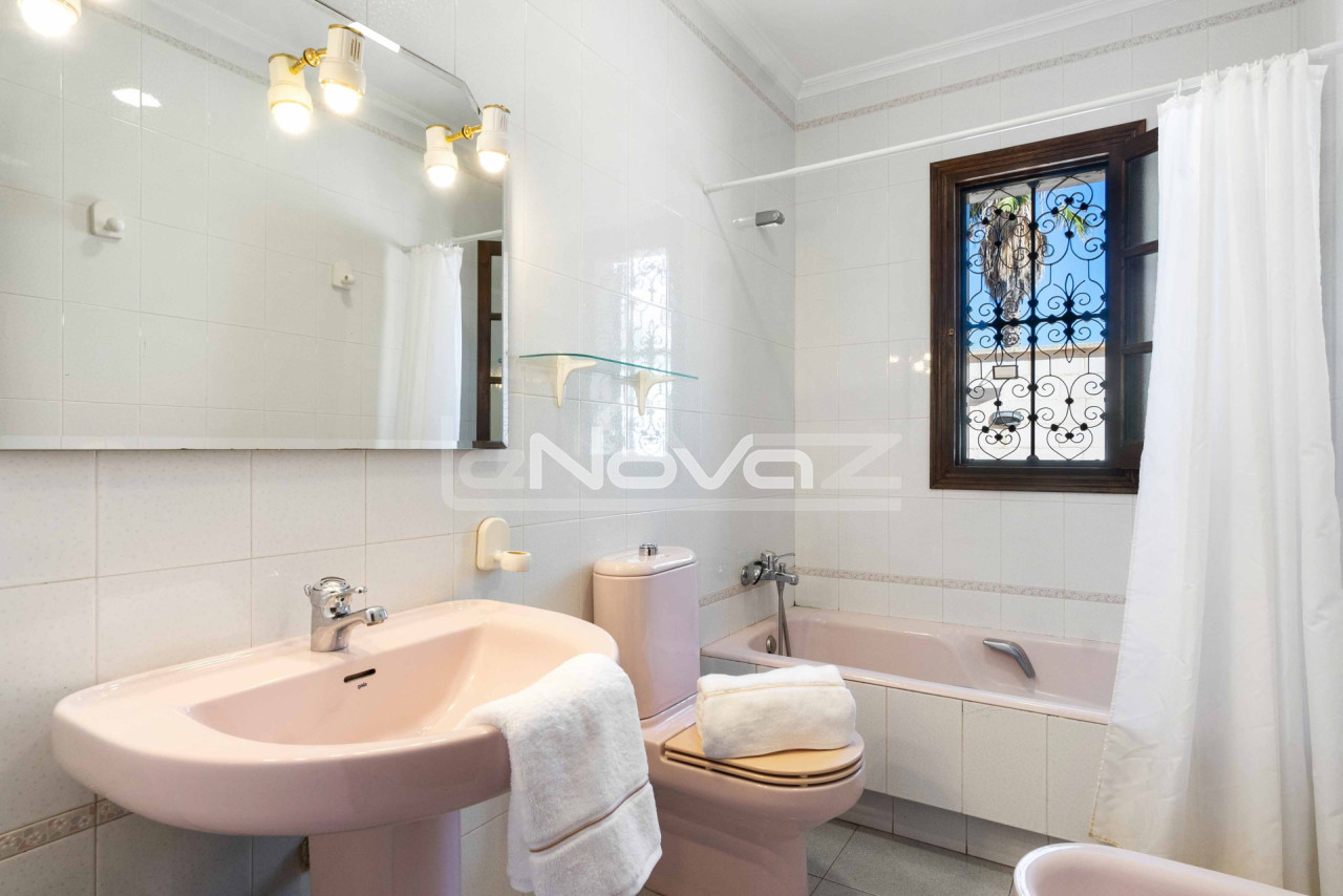 On the same ground floor there are two bedrooms with built-in wardrobes, a complete exterior bathroom with a window, and the staircase leading to the upper floor, where we find the two largest bedrooms, the second complete bathroom, and a terrace-solarium with views of the pool and the rest of the plot.