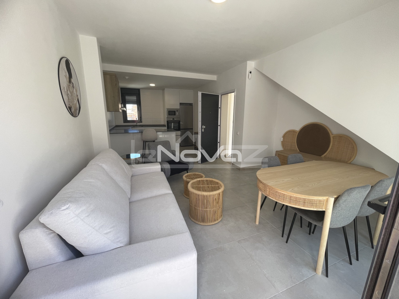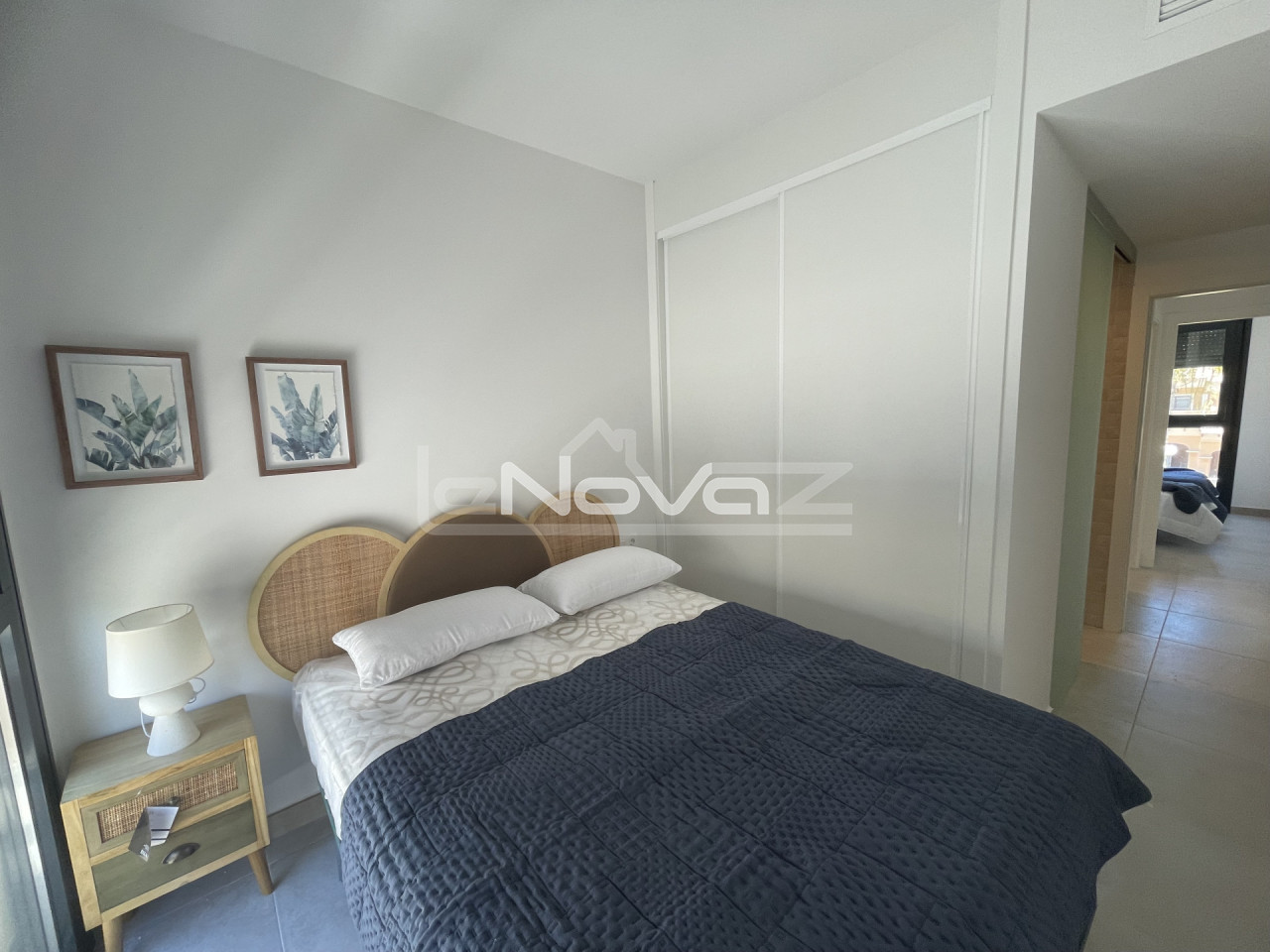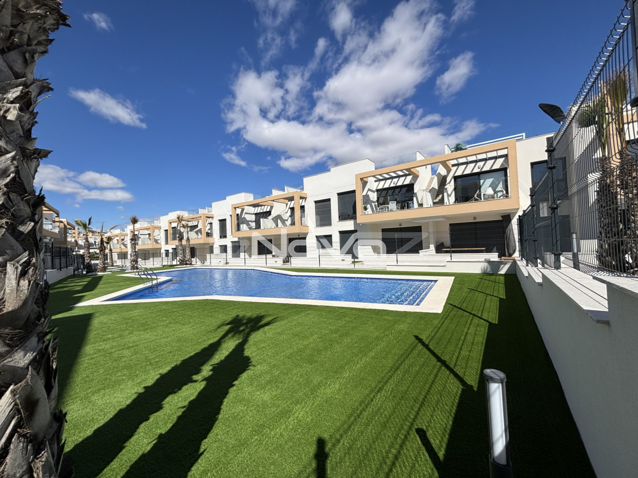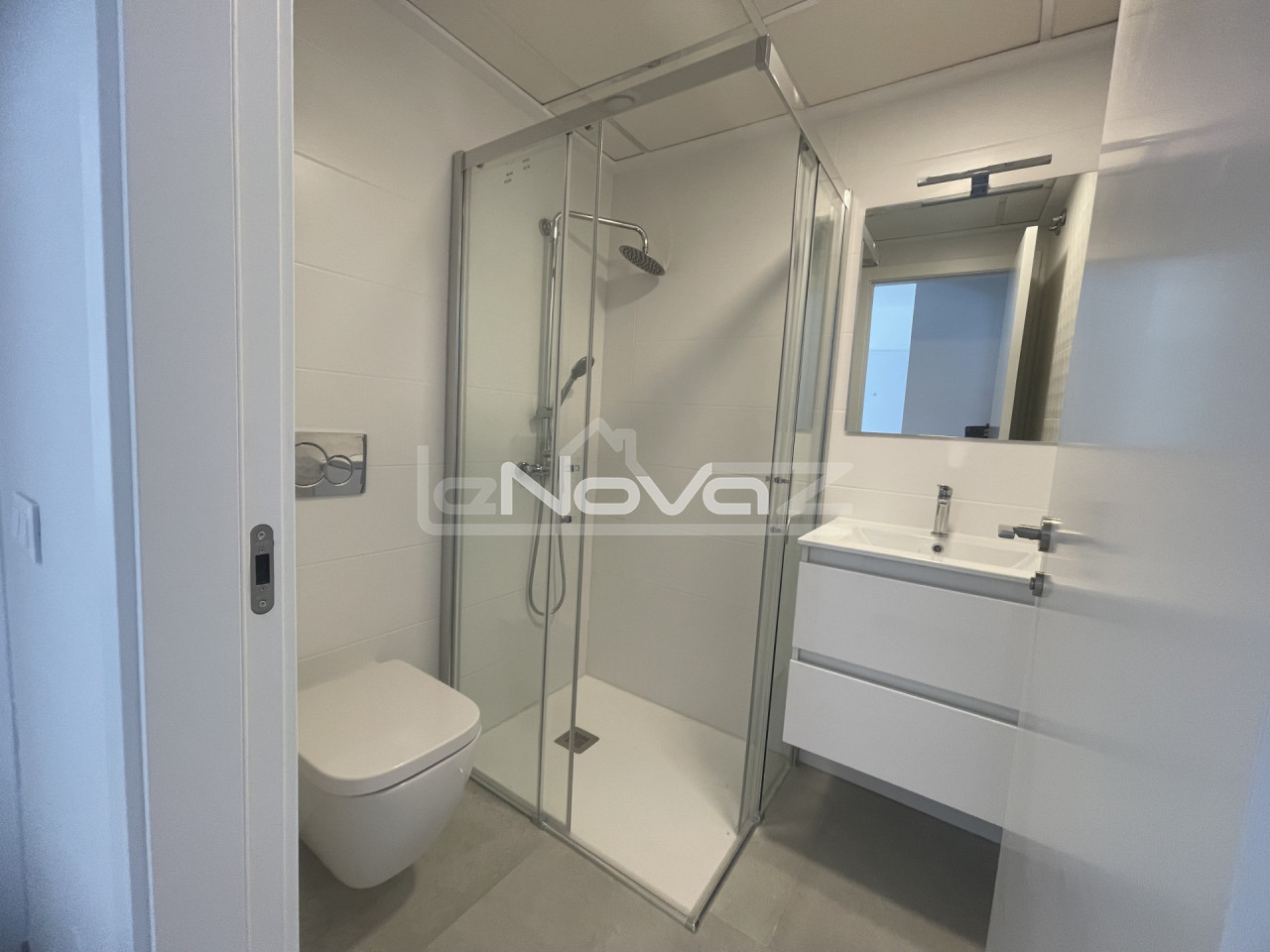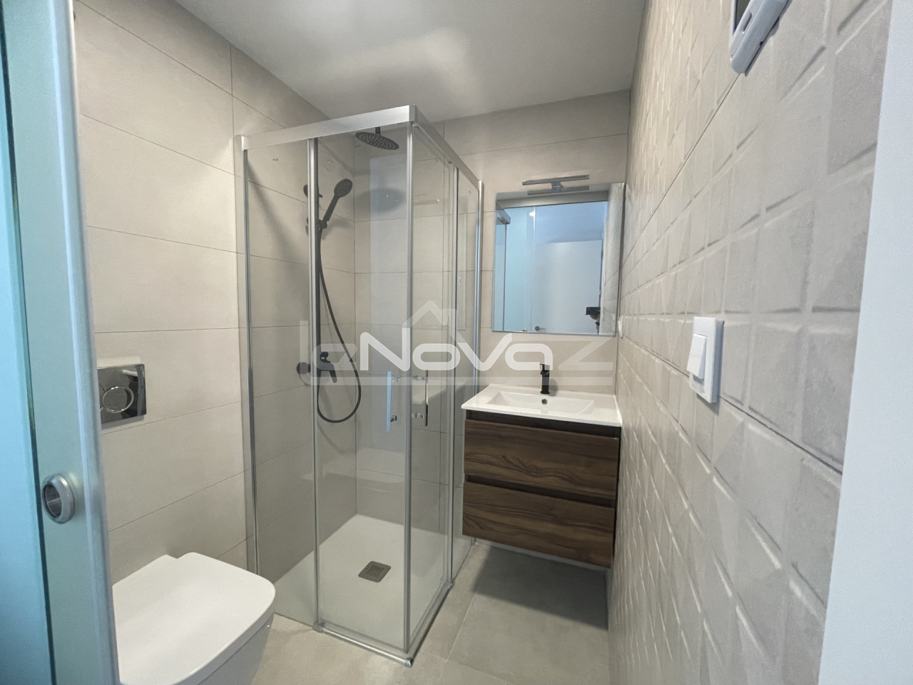 Modern new apartment with private solarium, located in the sought-after area of PAU 26, Orihuela Costa. The property is located on the top floor with independent entrance and features bright interiors, stylish design and excellent conditions for living and relaxing under the Mediterranean sun all year round. Orientation: South Community fees: 80 euros per month The apartment is partly furnished and ready to move into. It includes a spacious solarium with the possibility of installing a summer kitchen and a seating area, 2 bedrooms with built-in wardrobes, 2 modern bathrooms with underfloor heating, an open-plan kitchen combined with the living room and air conditioning for maximum comfort. Also included are white goods and an outdoor parking space. Residents of the complex have access to a communal swimming pool surrounded by green areas. Excellent location: close to supermarkets, cafes, golf courses, medical centers, the popular Zenia Boulevard shopping center and the magnificent beaches of Orihuela Costa.