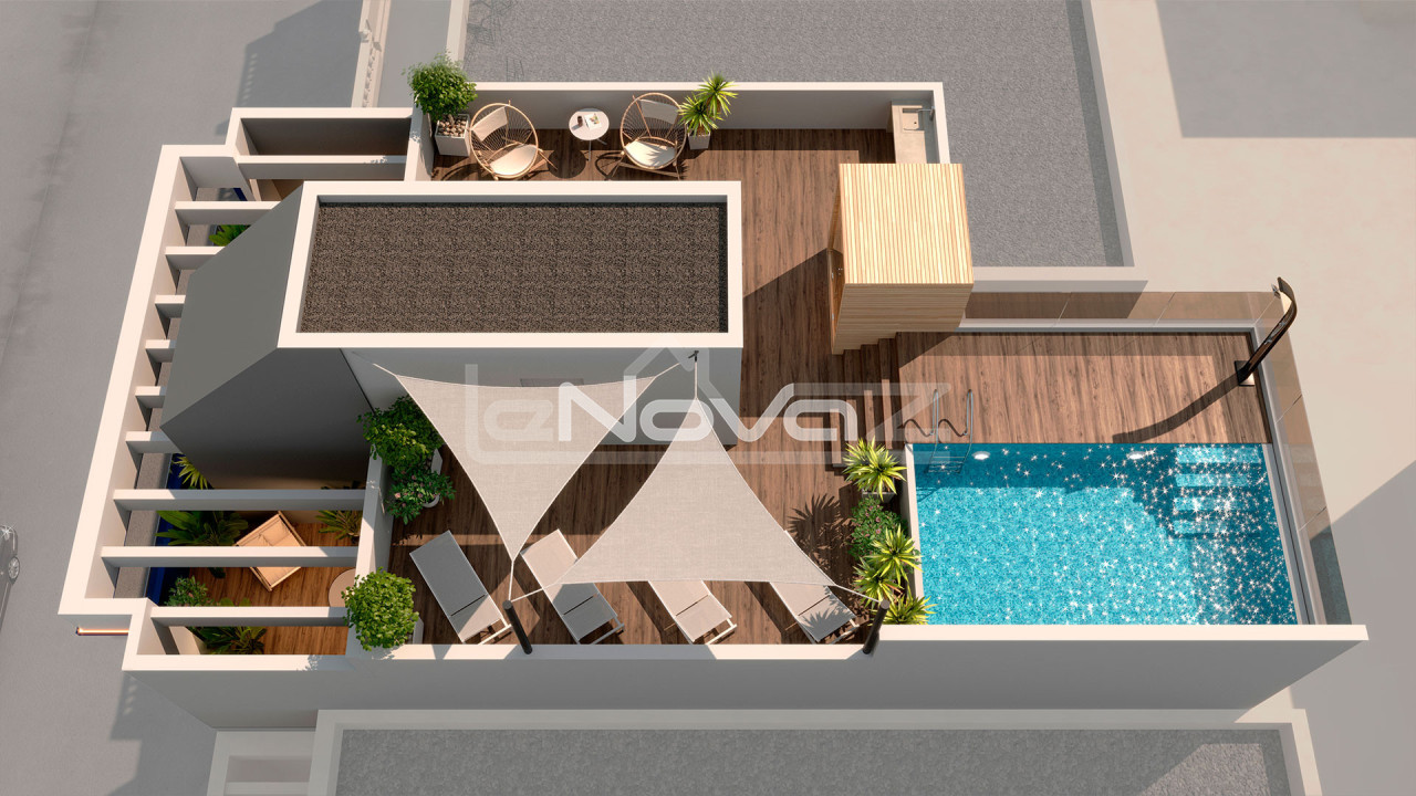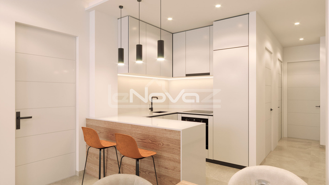 Cozy and stylish 1 bedroom 1 bathroom apartment located on the ground floor of a new residential complex in one of the quietest areas of Torrevieja, just 190 meters from the Acequión beach. This is an ideal place for both year-round living and for a holiday by the sea. The accommodation includes: a bright bedroom with a built-in wardrobe, a modern bathroom with underfloor heating, a spacious living room with access to a balcony, a terrace where you can enjoy fresh air and sun, a fully equipped kitchen (without appliances), quality finishing materials, windows with sun protection glazing and soundproofing. The complex offers: an 8-person elevator, a communal solarium with a swimming pool and a relaxation area on the roof, a sauna, a storage room (storage room) on the ground floor, ventilation and preparation for central air conditioning with the AirZone system and a heat pump, energy-efficient LED lighting, modern and stylish facades. The area has a well-developed infrastructure: shops, pharmacies, cafes, parks and bus stops are nearby. Thanks to good transport accessibility and proximity to the sea, the apartment will be an excellent choice for both personal residence and investment in rent.