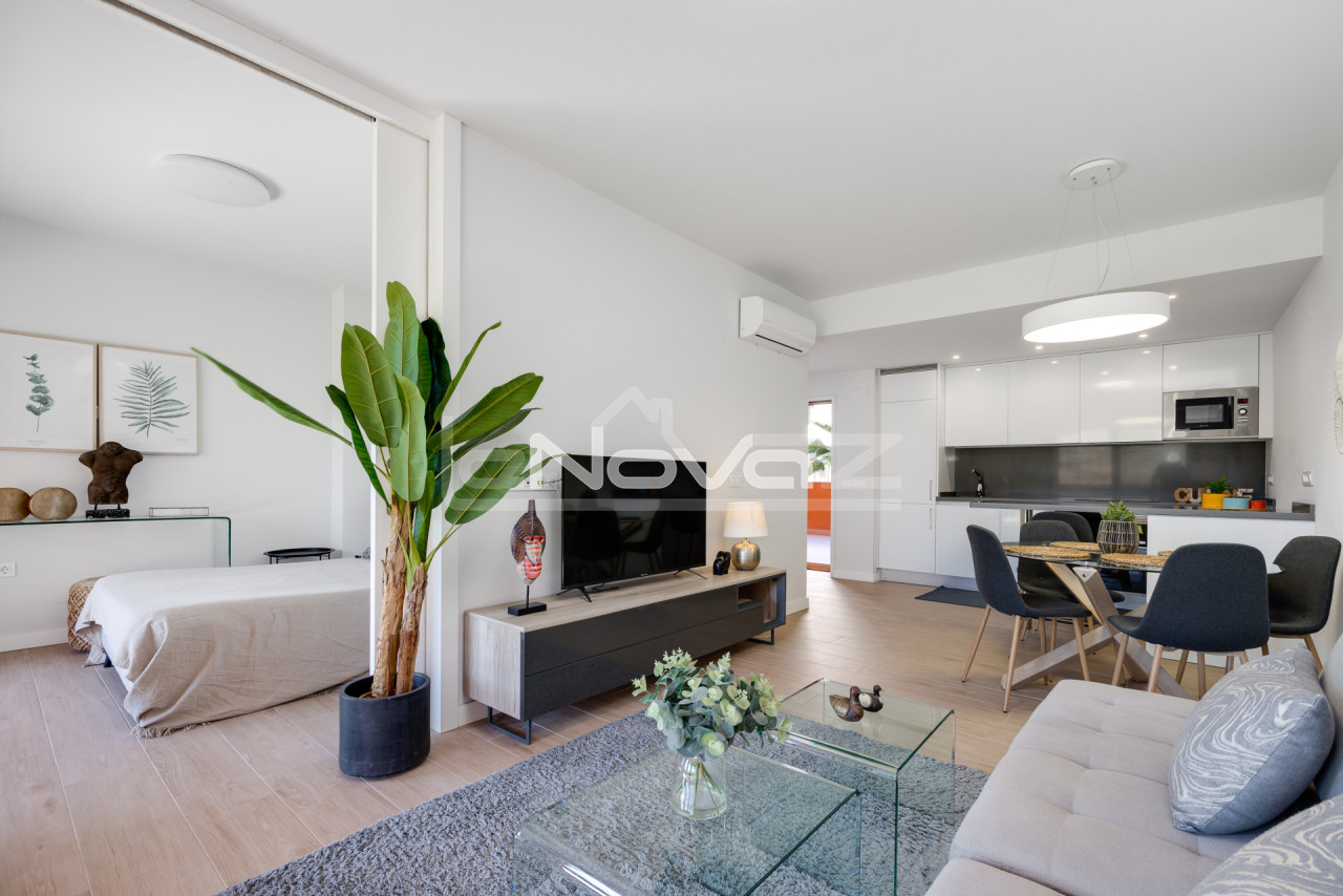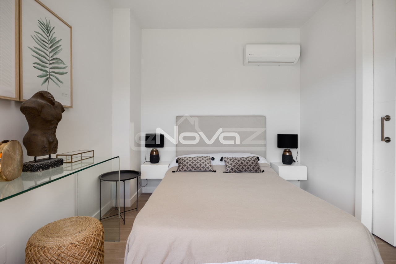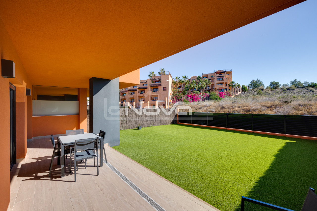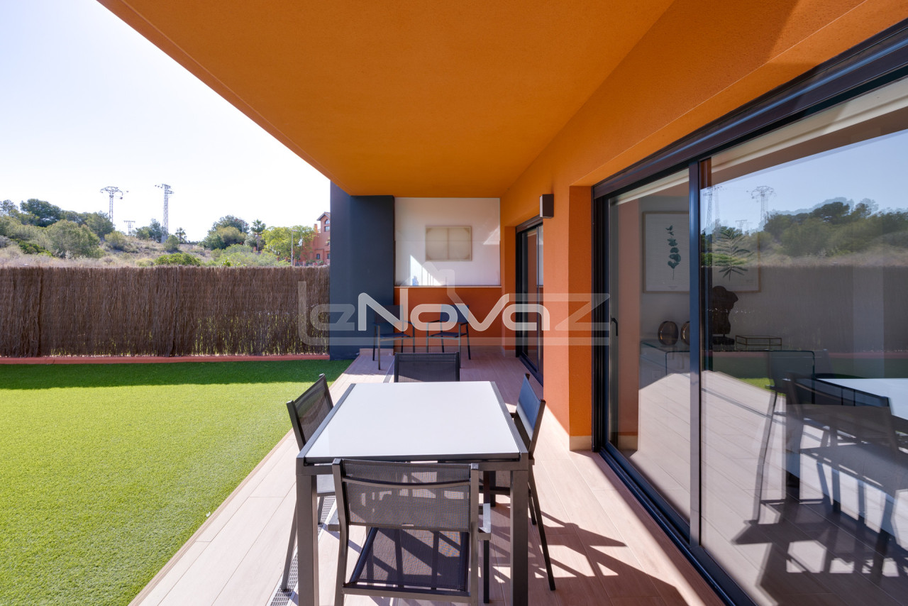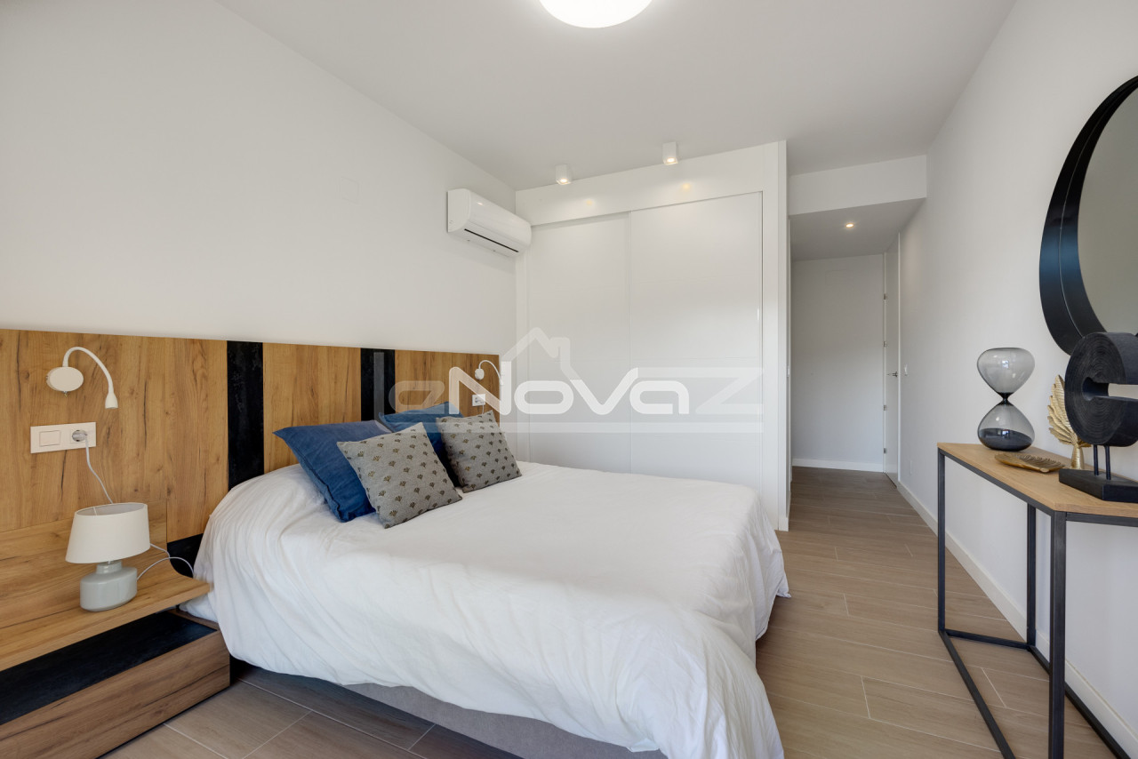 We offer a unique property on the ground floor, which will be an excellent choice for both permanent residence and investment in the tourist rental sector. The total area of the apartment is 106 m2, the layout is thought out to the smallest detail to ensure comfort and functionality. The apartment has two spacious bedrooms and two full bathrooms, which guarantees convenience and privacy. Large windows fill the rooms with natural light, creating an atmosphere of coziness and spaciousness. The main advantage is the vast outdoor spaces: two terraces for relaxing in the fresh air, a bright internal patio and an impressive private garden of 79 m2, where you can spend time in silence and complete privacy. Air conditioning and heating systems are installed for year-round comfort. The apartment is sold fully furnished, with a modern interior, ready for immediate occupancy at no additional cost. The residential complex offers its residents a high level of service: an elevator, a common pool, well-kept green areas. The price includes a place in the underground parking, which provides additional convenience and safety. The location of the property combines the quiet atmosphere of a residential area with convenient access to infrastructure and transport arteries. This offer will be an excellent choice for those who value space, modern amenities and comfortable life by the sea.