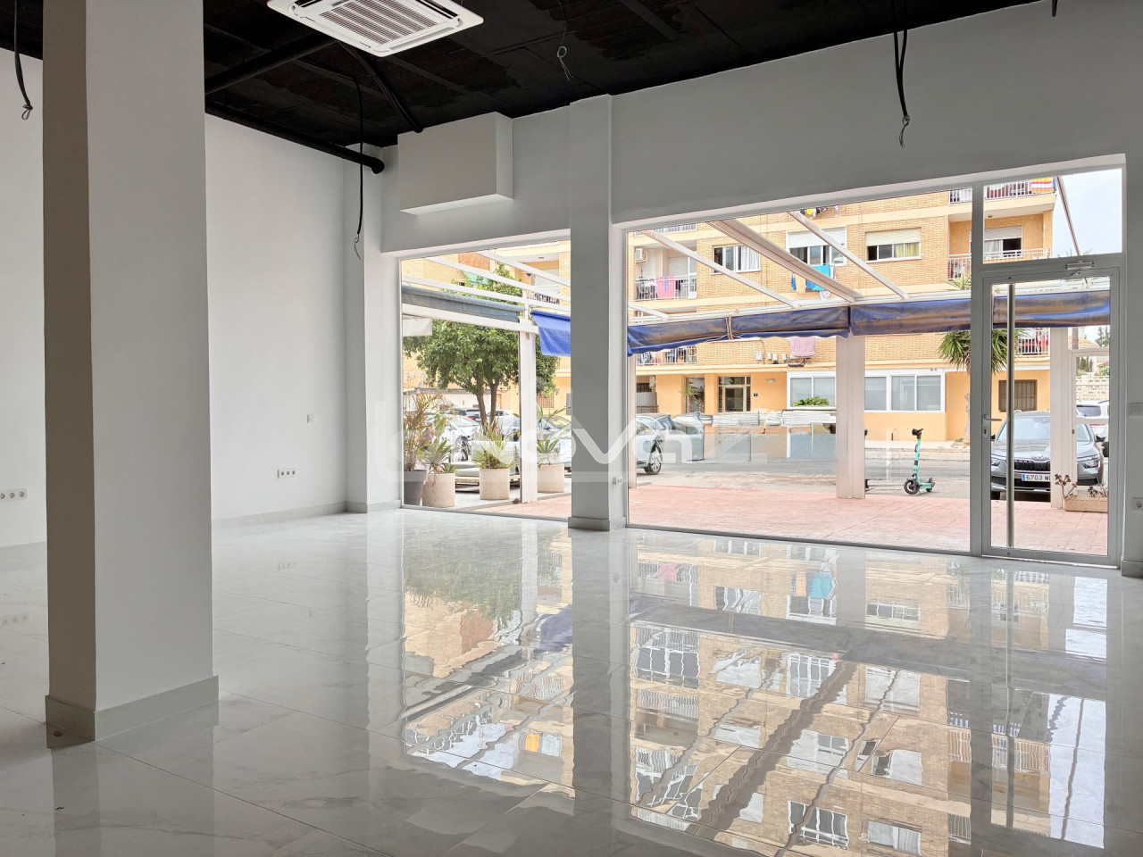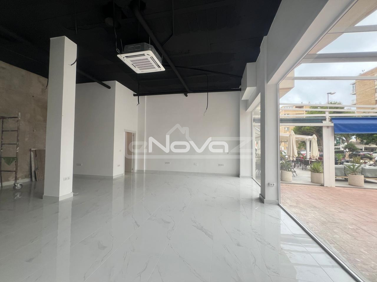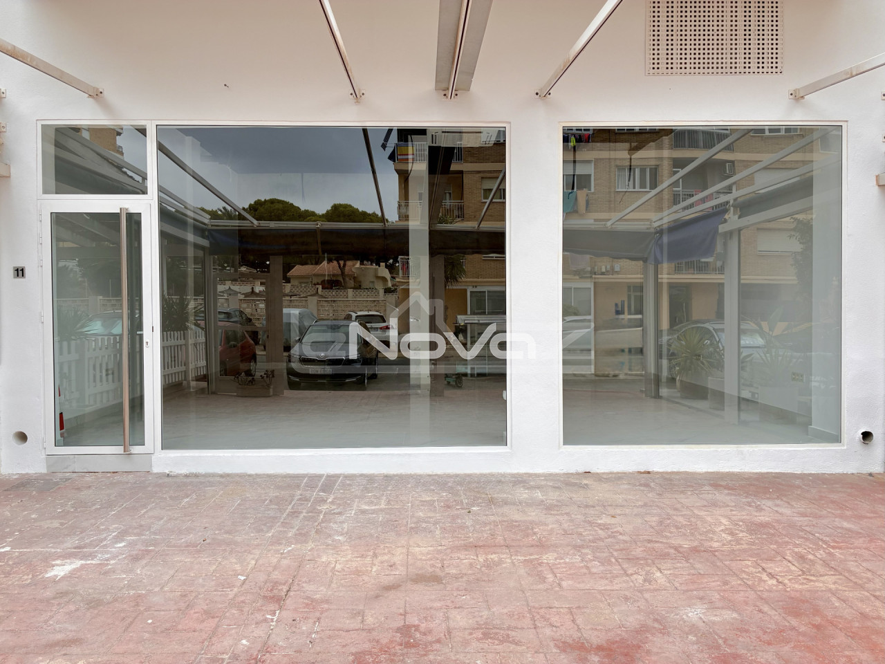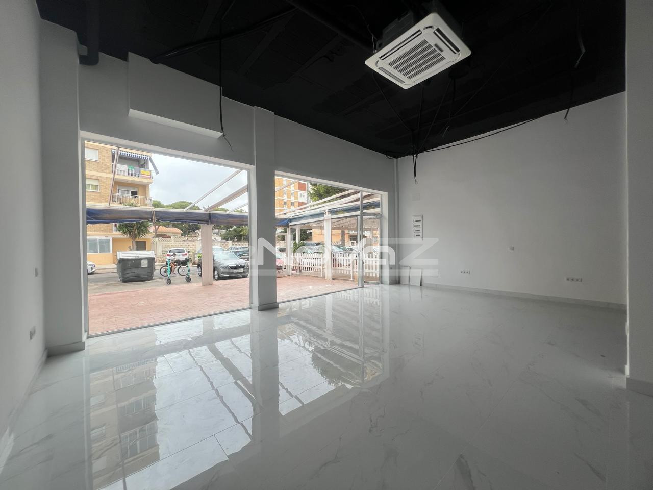Commercial premises of 80 m2 and a private terrace of 60 m2 are available for long-term rent in La Zenia, just 300 m from the sea. It is located in a crowded place with high traffic. Panoramic windows to the floor. Newly renovated: tiles, walls. Bathroom. Private terrace. Suitable for any business except a restaurant. An excellent option for an office, store, beauty salon or showroom.