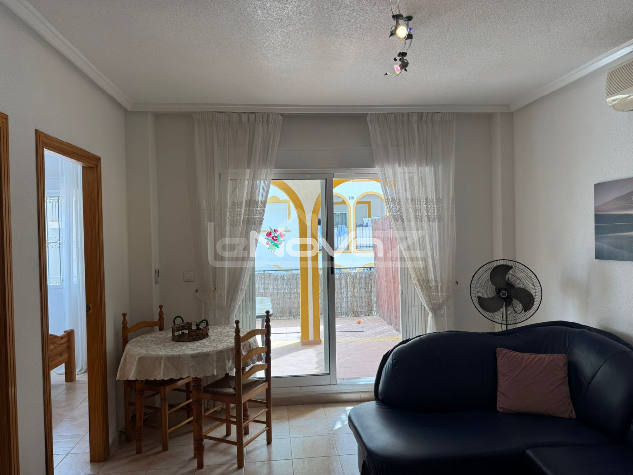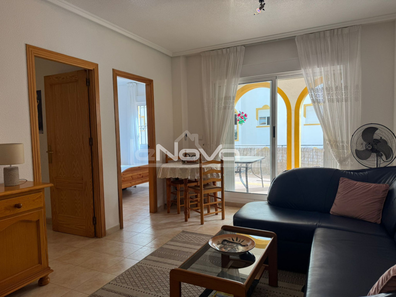 This charming apartment is located in the heart of La Zenia, one of the most sought after areas of the Costa Blanca. Just across the road is a beautiful park, ideal for strolling and relaxing, and just a few meters away are supermarkets, cafes and some of the best restaurants in the area. In addition, just 800 meters away is the popular La Zenia Boulevard shopping center, offering a wide range of shops, leisure and entertainment options. The house stands out for its classic Spanish style, full of charm and character, with a cosy and very bright layout. The living-dining room is connected to the practical kitchen, while the bedrooms offer comfortable space and built-in wardrobes. The private terrace offers wonderful views over the residential complex, ideal for breakfast in the sun or dining al fresco on warm Mediterranean evenings. The apartment is part of a beautiful complex that offers a peaceful and secure atmosphere, despite being in the heart of La Zenia. The property offers a communal swimming pool, green areas and ideal spaces to relax and enjoy the Mediterranean lifestyle. The location is ideal: just a few minutes walk from the golden sandy beaches of La Zenia, with easy access to other coves and coastal towns of Orihuela Costa. In addition, the area has excellent transport links to Torrevieja, Campoamor and Villamartin, where there are famous golf courses. In short, this apartment is a unique opportunity for those looking for a home with Spanish charm, in a quiet but central area, where you will find everything you need to fully enjoy the Mediterranean climate and lifestyle.