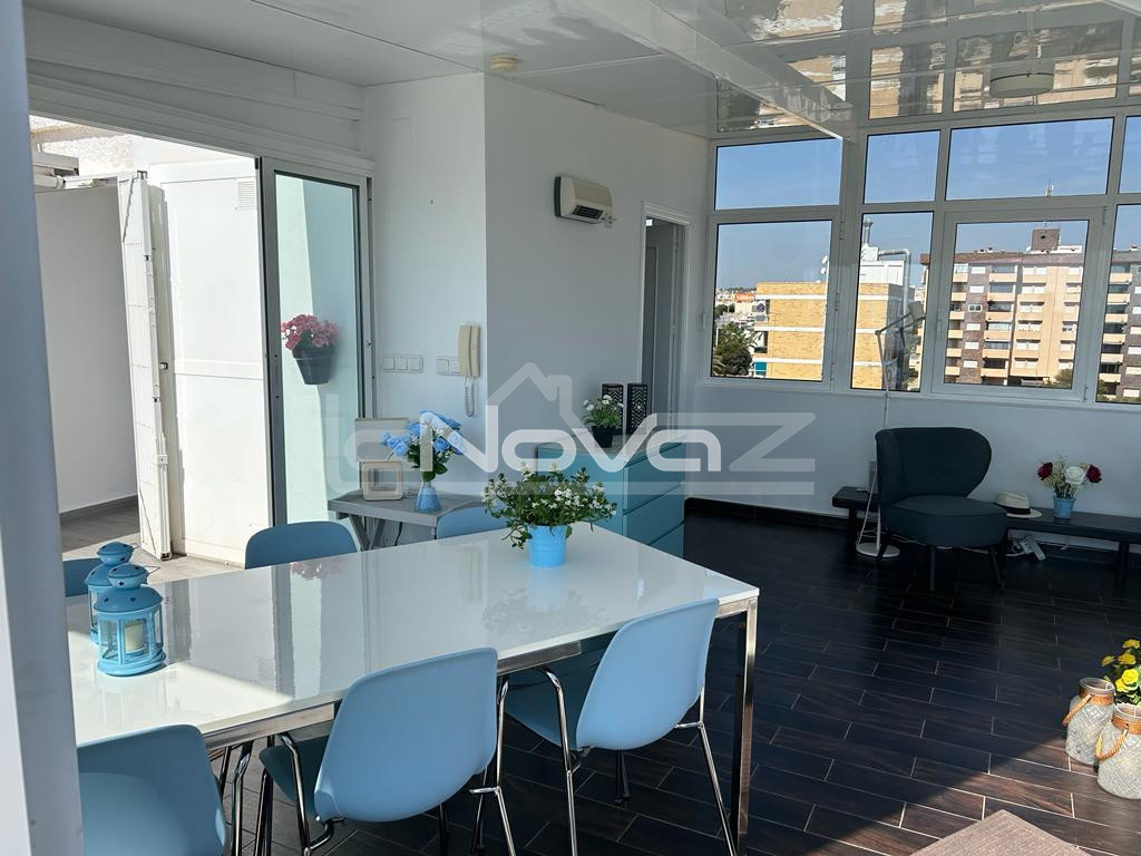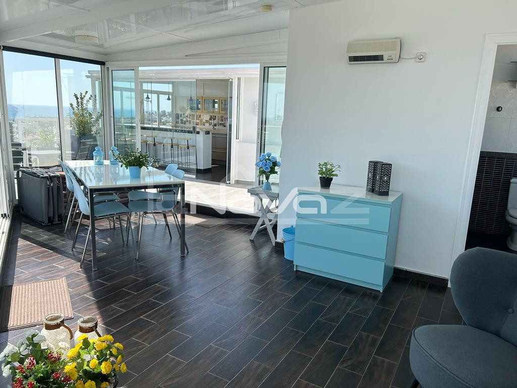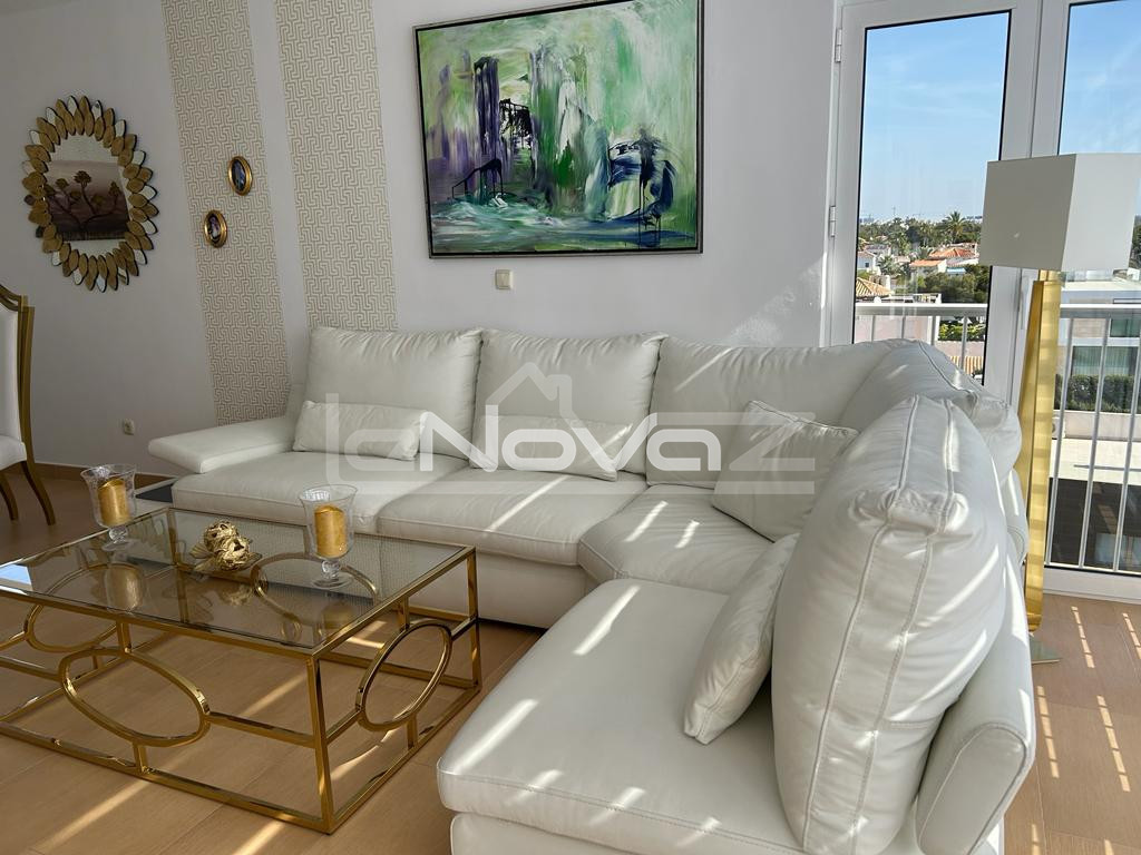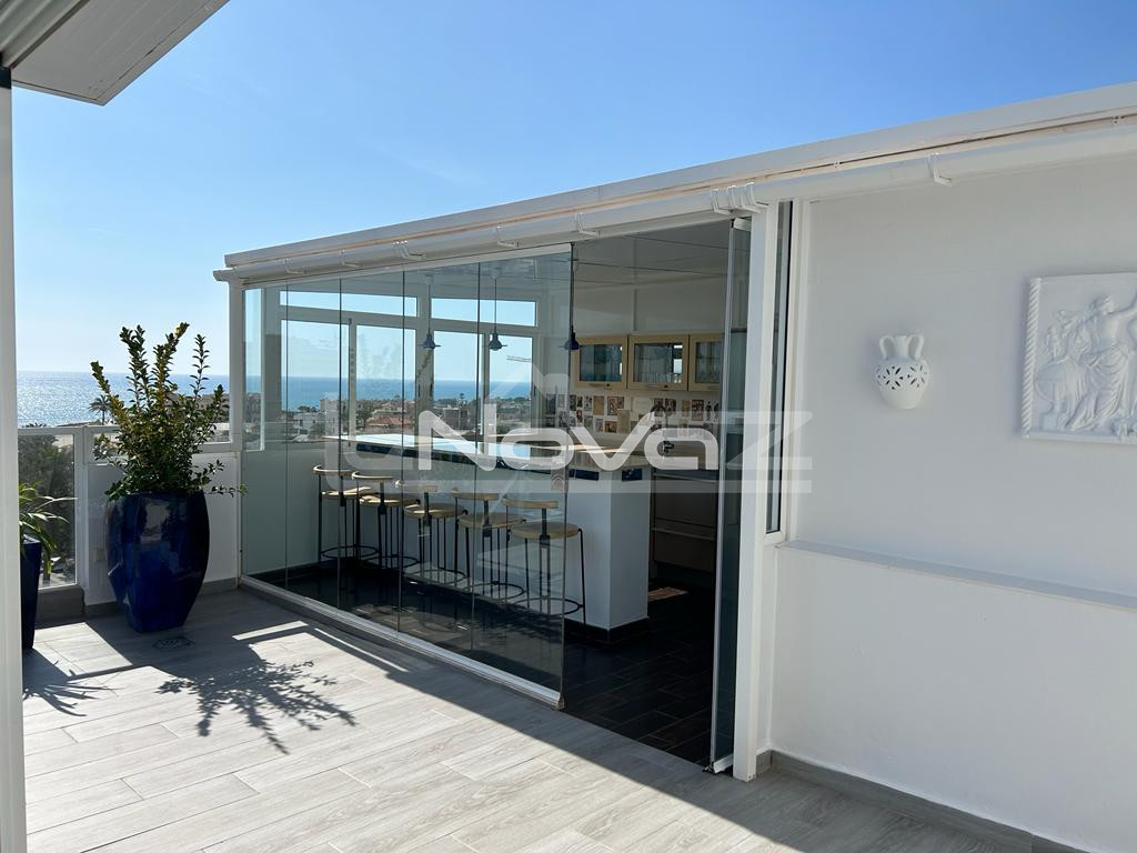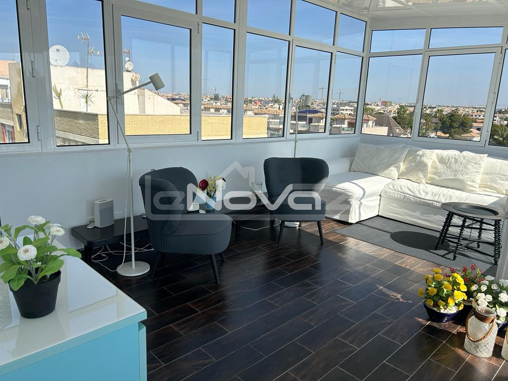 Incredible penthouse with 3 bedrooms, 3 bathrooms, huge solarium (100m2) with breathtaking sea views 200m from the beach in La Zenia. Incredible panoramic views of the Mediterranean Sea open from all windows and from the solarium terrace. The penthouse boasts an exceptionally comfortable designer layout. Upon entering the apartment, you are greeted by a stylish and functional entrance hall. Master bedroom with walk-in closet and en-suite bathroom with access to a spacious terrace with library area. On the other side of the hallway are 2 guest bedrooms and a guest bathroom. The living room is very bright and spacious, made in a classic style. The living room is divided into a fairly spacious dining area and a seating area that can accommodate even a very large family. The separate kitchen with a large window overlooking the pool is equipped with the latest technology and, in addition to everything you need, includes professional water purification equipment throughout the apartment. There is also a laundry area, which is hidden from prying eyes and opens when necessary. The pinnacle of perfection is the 100 m2 private solarium terrace, ideally designed for families and events. On this level, it is even possible to accommodate guests for the night, as there is a fairly large covered area with a pull-out sofa bed, a separate kitchen with appliances and a guest bathroom with a shower. As well as an impressive outdoor garden terrace with breathtaking views of the sea. Penthouse with an incredible location in the heart of the trendy resort of La Zenia, 3 minutes walk to the magnificent beach. A spacious swimming pool with sea water is open for residents of the house.
