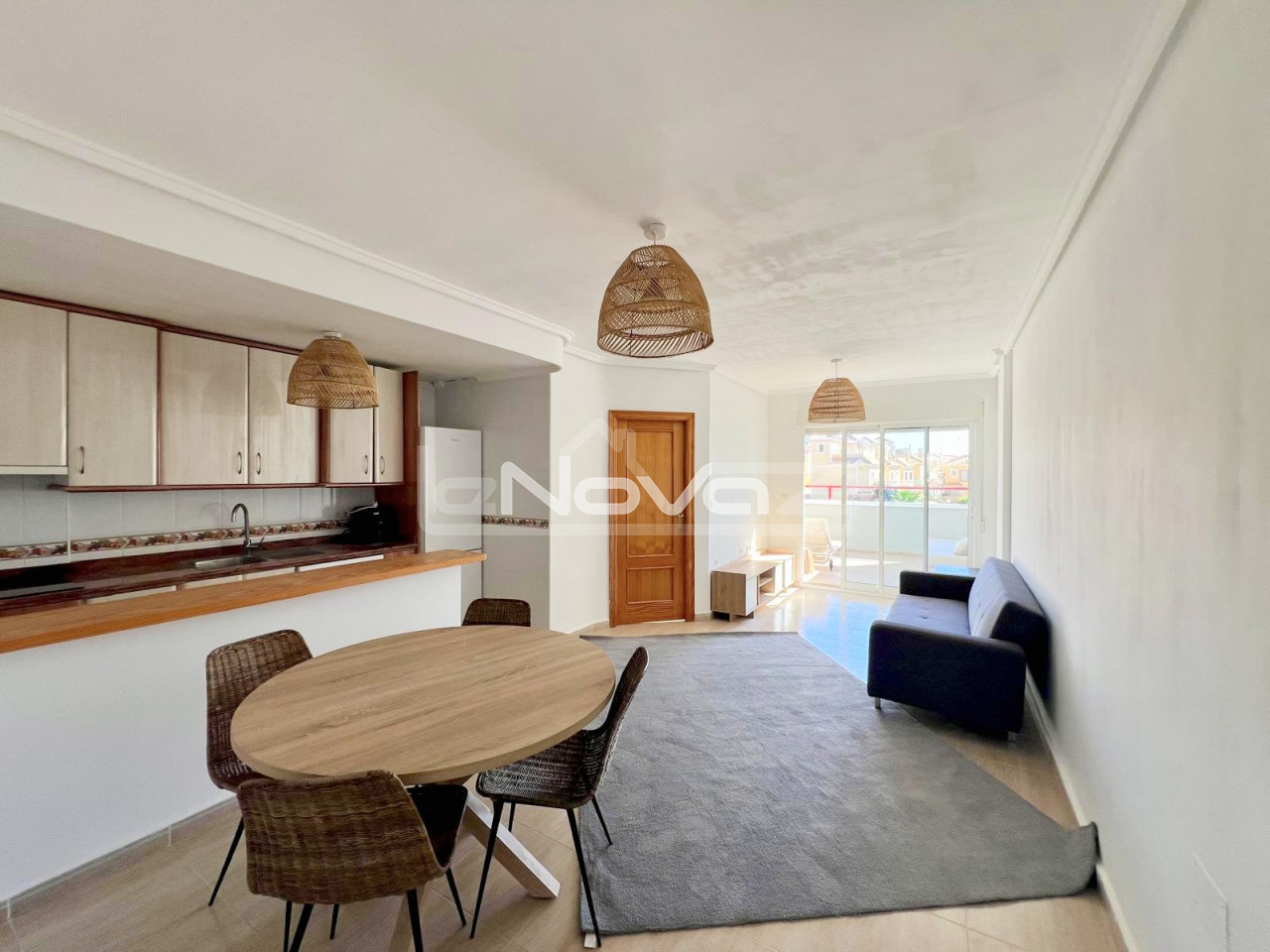 Cozy apartment with its own courtyard and solarium We offer a spacious and bright apartment with 2 bedrooms in the area of Villamartin, Orihuela Costa. The apartment is located on the ground floor, has a modern interior and is completely ready for occupancy. Main features: 2 bedrooms, spacious living room with access to the terrace, open kitchen equipped with all necessary appliances. 1 bathroom. Bright rooms with large windows. Fully furnished. The apartment is located in a quiet and comfortable area with developed infrastructure. Shops, restaurants and public transport stops are within walking distance.