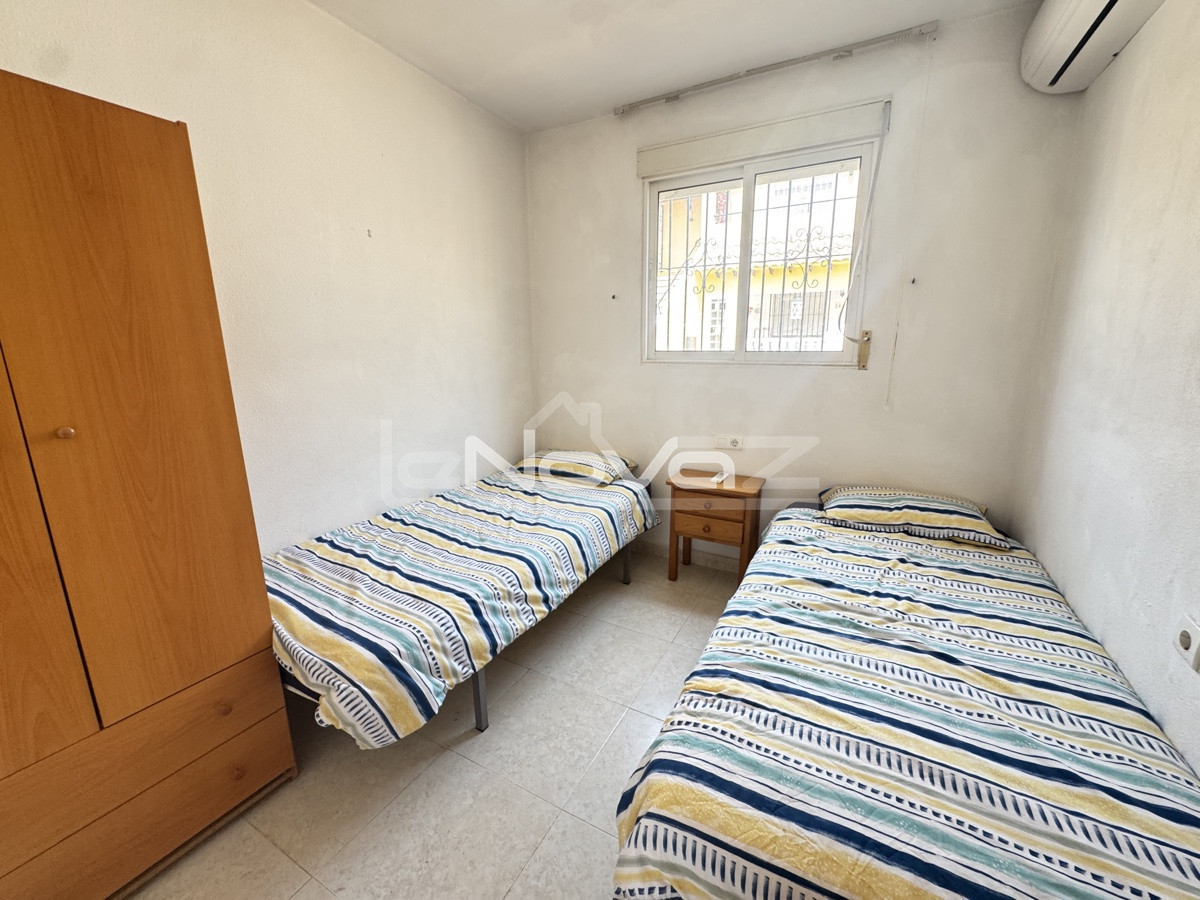 This charming ground-floor bungalow is located in the popular area of Villamartín (Orihuela Costa), within walking distance of Villamartín Plaza and very close to the prestigious Colegio El Limonar International School. The property offers a Mediterranean style with spacious outdoor areas and is ideally located to enjoy outdoor living all year round. It comprises: 2 bright bedrooms with fitted wardrobes. 1 full bathroom. Living/dining room with direct access to the garden. Open-plan fitted kitchen. Front and rear gardens, perfect for relaxing or enjoying al fresco meals. Communal pool in a beautiful residential setting. Thanks to its excellent location, close to restaurants, shops, golf courses and just minutes from the beaches of Orihuela Costa, this property is ideal as a permanent residence, a holiday home or a highly profitable investment.