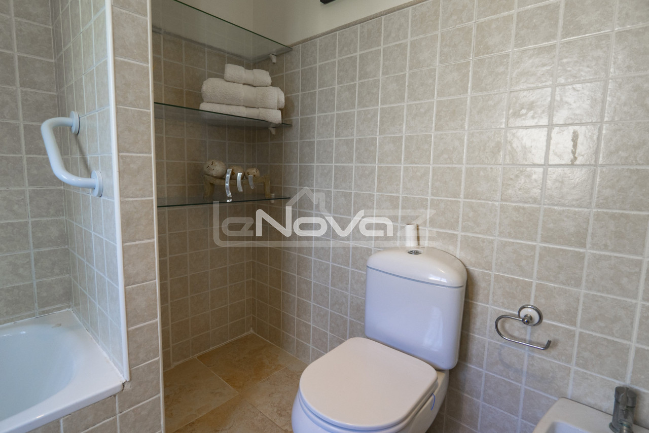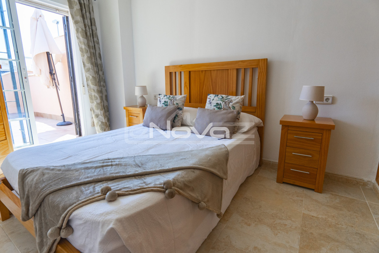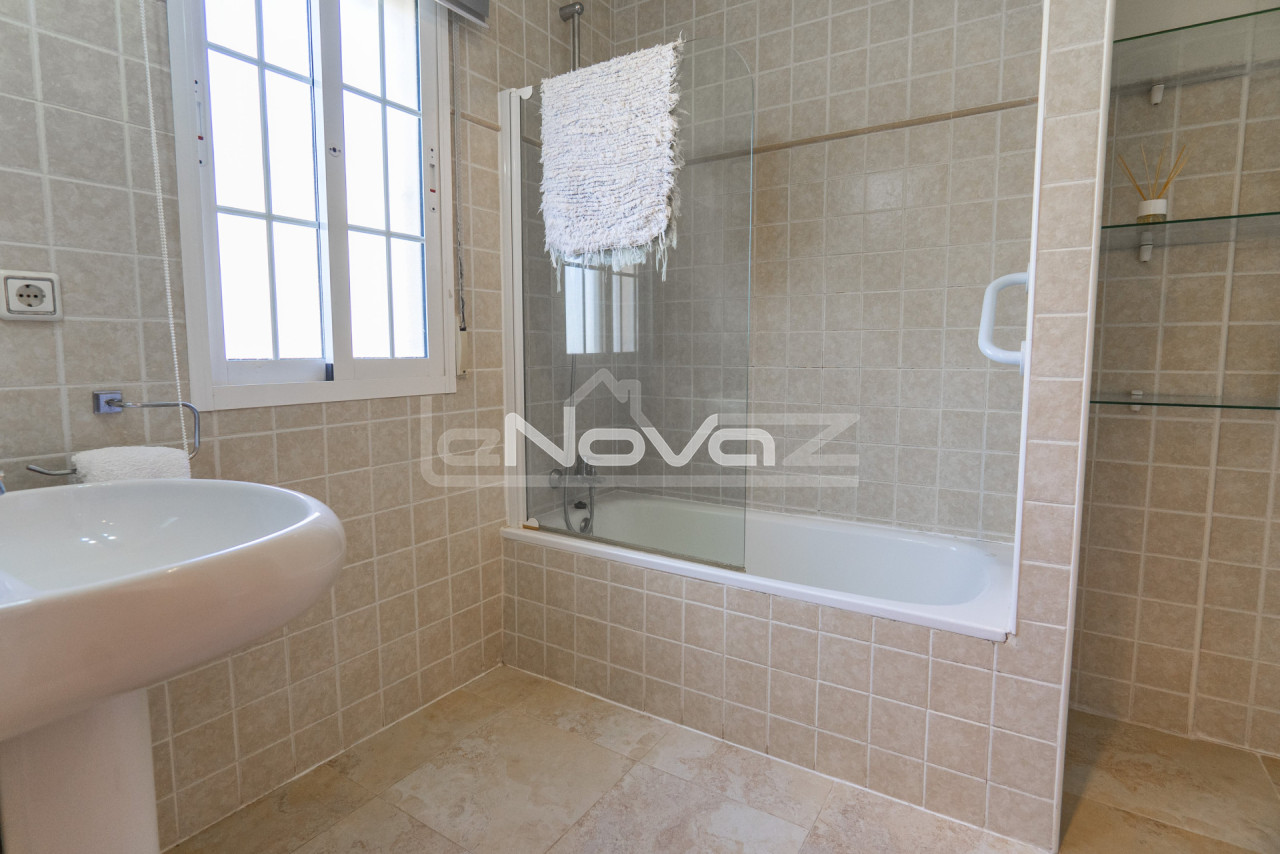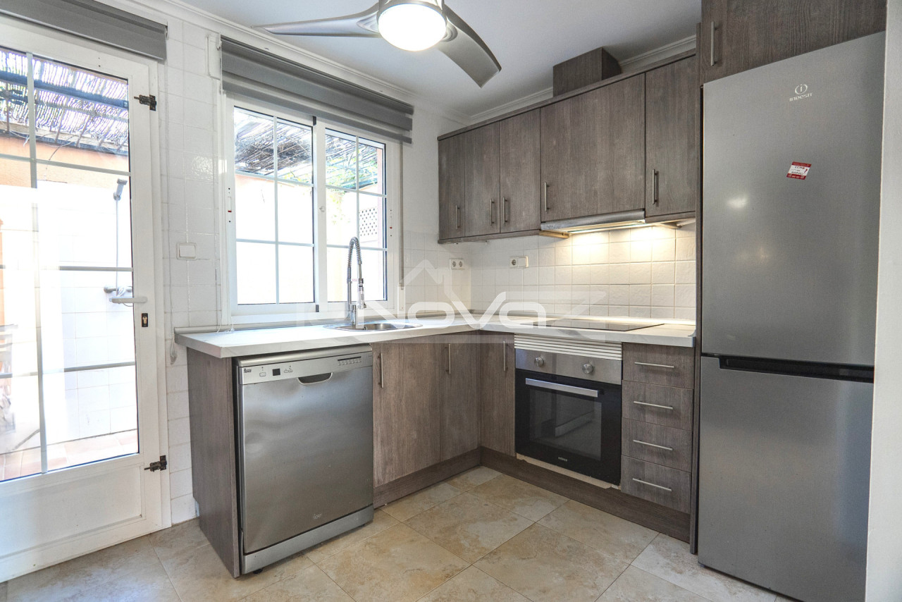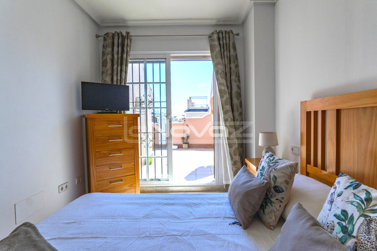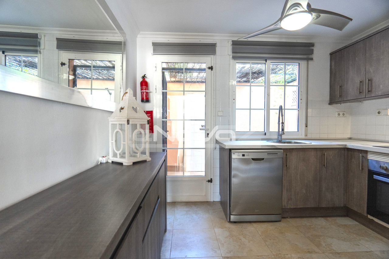 Eladó egy hangulatos, 106 m2-es villa egy 101 m2-es telken garázzsal, Lomas de Cabo Roig keresett környékén, mindössze 10 percre a strandoktól és a Zenia Boulevard bevásárlóközponttól. Gyalogosan elérhető üzletek, bárok és éttermek. A földszinten található egy világos nappali kandallóval és légkondicionálóval, egy hálószoba beépített szekrénnyel, egy modern fürdőszoba zuhanyzóval, egy különálló konyha és egy mosókonyha. A második emeleten két tágas hálószoba található teraszkapcsolattal és egy második fürdőszoba káddal. Minden hálószoba légkondicionált. A komplexum gyönyörű közös helyiségeket kínál: egy nagy úszómedence japán stílusú jakuzzival, zöld kertek, játszótér és egy szabadtéri edzőterem. Ideális állandó lakhatásra vagy nyaralásra. A villa teljesen berendezett és azonnal beköltözhető.