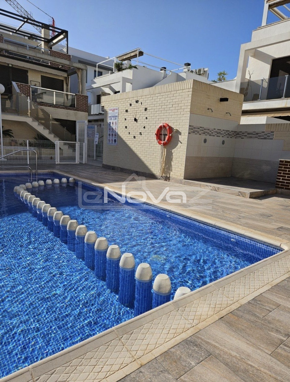 Tágas földszinti lakás Lomas de Cabo Roig tekintélyes részén, Orihuela Costán. Ez a teljesen berendezett ingatlan két hálószobával, két fürdőszobával, világos nappalival, nyitott konyhával, valamint mosókonyhával és terasszal rendelkezik. A lakás modern dizájnnal és magas szintű kényelemmel rendelkezik. A teraszról közvetlenül elérhető a közösségi tér, ahol kültéri medence, edzőterem, szauna és beltéri jakuzzi található - minden a teljes értékű pihenéshez és az egészséges életmódhoz. Ideális állandó lakhatásra és befektetésnek is, akár bérbeadás céljából. Beépített szekrények: 2 Nyitott konyha gépekkel Légkondicionáló és fűtés Mosókonyha és tárolóhelyiség Terasz, kilátással a közösségi térre Teljesen bútorozott Elhelyezkedés: Távolság a strandtól: 3 km Távolság a repülőtértől: 55 km Távolság a Zenia Boulevard bevásárló- és szórakoztatóközponttól: 5 perc autóval Távolság a szabadidős területtől és éttermektől: 500 méter Távolság a golfpályától: 1 km