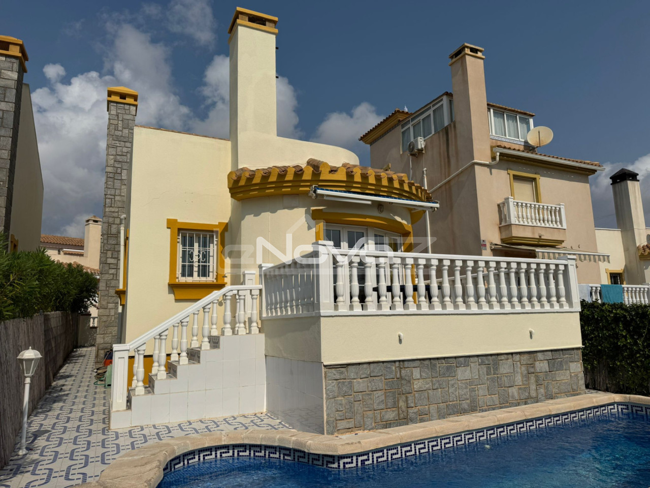 Bemutatjuk ezt az elegáns, négy tágas hálószobás villát, amely a Costa Blanca egyik legrangosabb részén, Cabo Roigban, Orihuela Costában található. Ez a villa ötvözi a kényelmet, a magánéletet és a kiváló elhelyezkedést, ideális mind állandó lakhatásra, mind nyaralásra. A ház elülső részén tágas telek található, privát parkolóval, és az elrendezés a mediterrán éghajlat élvezetét szolgálja. Hátul egy privát medence található, amelyet nagy kültéri területek vesznek körül, ideális a pihenésre és a kikapcsolódásra. Van egy nagy napozóterasz is, ahonnan csodálatos kilátás nyílik a tengerre és Cabo Roig természetére. A villa egy nagyon csendes lakóövezetben található, amely garantálja a magánéletet és a kényelmet, ugyanakkor mindössze néhány perc sétára van a környék egyik legrangosabb strandjától. A villa mindössze 5 perc autóútra található a tartomány legnagyobb La Zenia Boulevard bevásárlóközpontjától, ahol számos üzlet, étterem és szórakozási lehetőség található. Az Alicante nemzetközi repülőtér autóval körülbelül 45 perc alatt elérhető, így a belföldi és nemzetközi járatok is könnyen elérhetők. Cabo Roig Orihuela Costa egyik legkeresettebb területe, amely természeti szépségéről, finom homokos strandjairól és lélegzetelállító kilátást nyújtó sétányáról híres. A környék kiváló szolgáltatási infrastruktúrát, első osztályú éttermeket, kikötőket, közeli golfpályákat és egész évben aktív társasági életet kínál. Ez a villa egyedülálló lehetőséget kínál ingatlanvásárlásra a Földközi-tenger egyik legjobb helyén, ahol a nyugalom és a luxus ötvöződik a szükséges szolgáltatások közelségével.