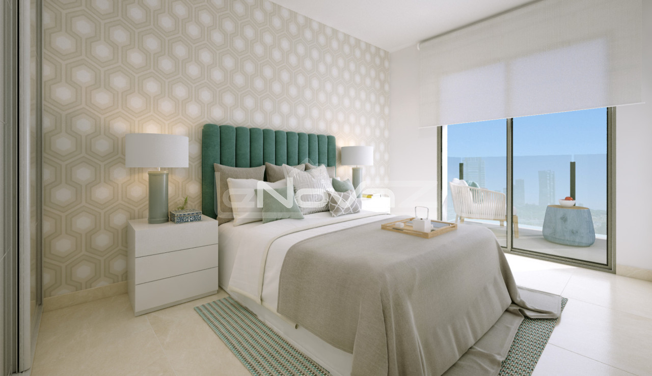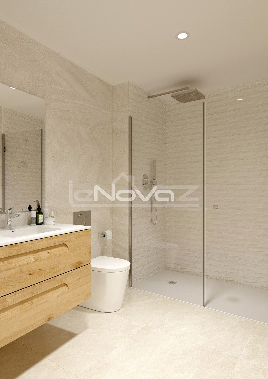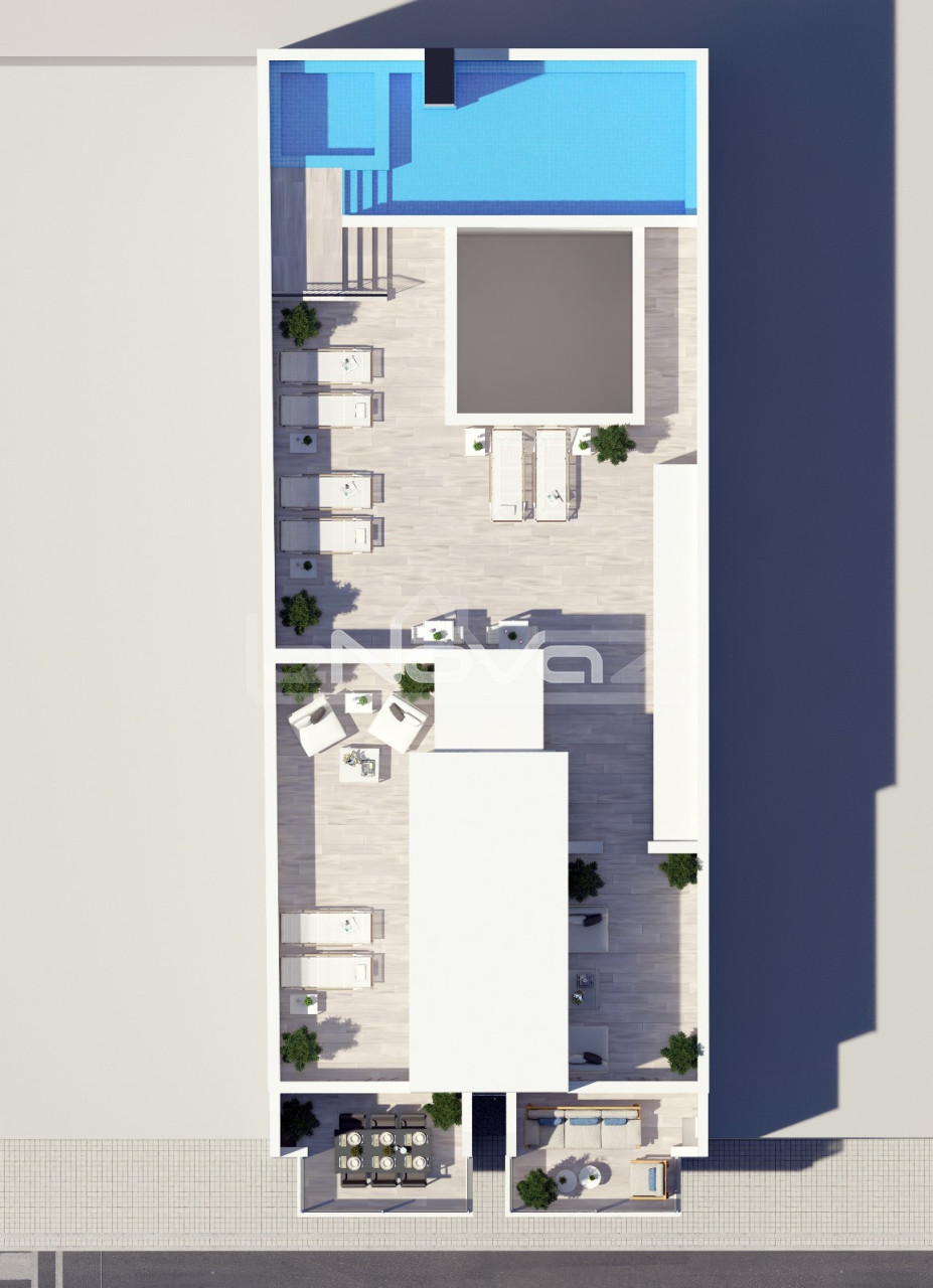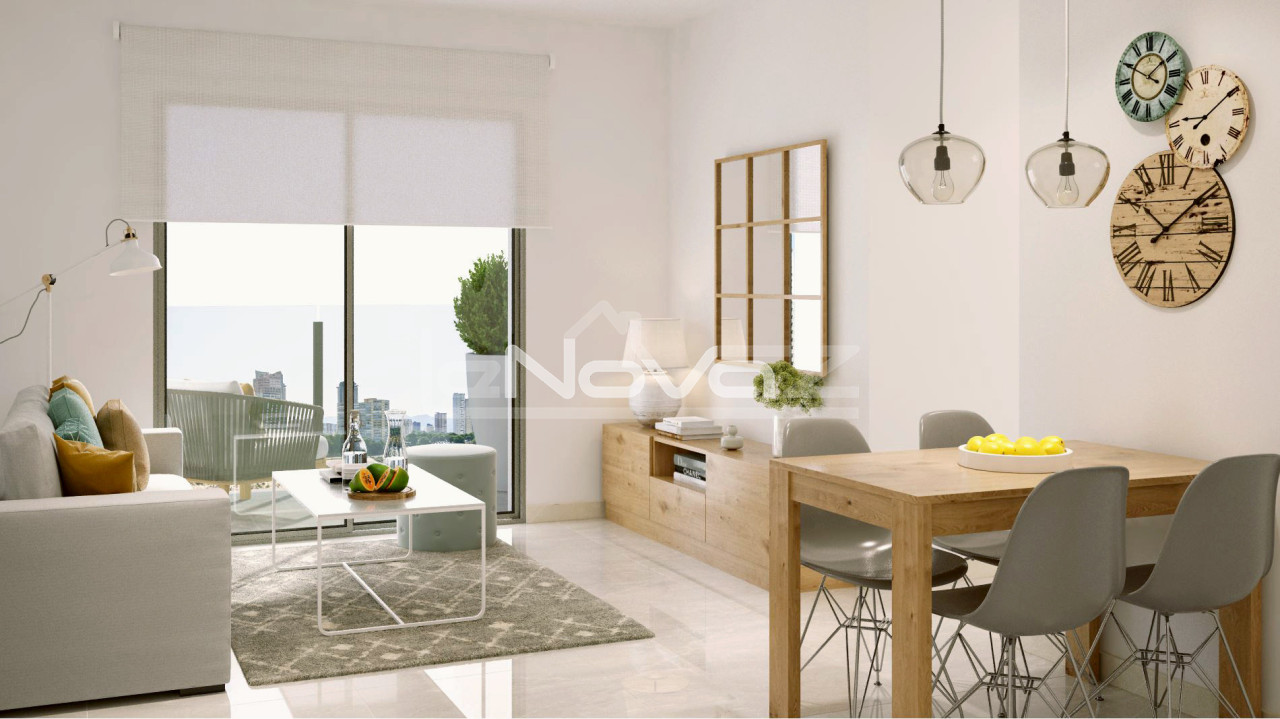 Ez a modern torreviejai lakás kiemelkedik világos, nyitott terű elrendezésével, ahol a nappali a modern konyhával egyben van, így egy hangulatos és funkcionális teret teremtve. A lakásban két hálószoba (esetleg három) található, a fő hálószoba pedig különálló lakosztály saját fürdőszobával. Összesen két fürdőszoba található a lakásban, melyek kiváló minőségű anyagokkal és olyan részletekkel készültek, mint az üvegfalak és a padlófűtés a nagyobb kényelem érdekében. A nappaliból egy napsütötte teraszra nyílik kilátás, amely ideális a mediterrán éghajlat és a városra nyíló gyönyörű kilátás élvezetéhez. A lakás minden szükséges felszereltséggel rendelkezik, például energiatakarékos légkondicionálással, előre telepített légkondicionálóval és tágas beépített szekrényekkel. A házhoz egy nagy, közös tetőterasz tartozik úszómedencével és szoláriummal, amely ideális a pihenésre és a napsütéses napok élvezetére. A lakás kiváltságos helyen található: mindössze néhány méterre Playa del Cura strandjától és néhány perc sétára Torrevieja központjától, könnyen megközelíthetőek éttermek, üzletek és mindenféle szolgáltatás. Kiváló közlekedési kapcsolatokkal rendelkezik a Costa Blanca többi tengerparti területéhez, és mindössze néhány perc autóútra van bevásárlóközpontoktól és golfpályáktól.
