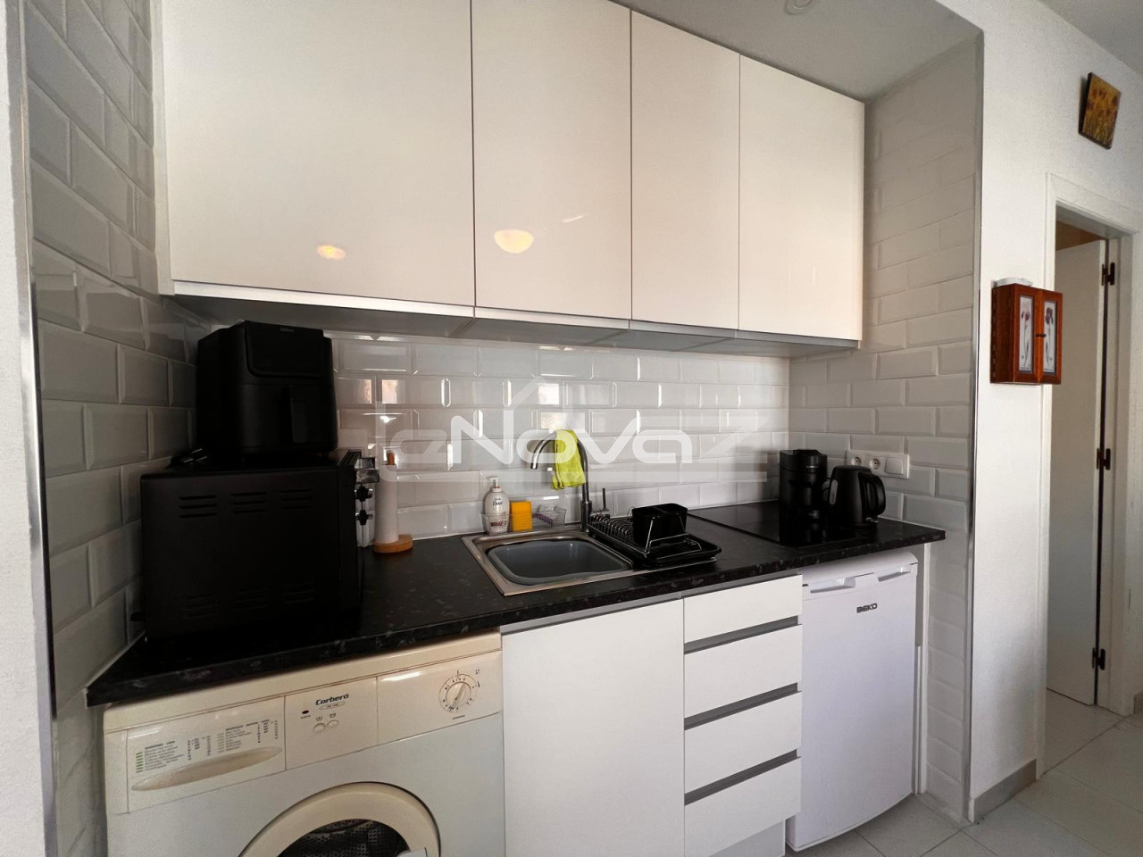 Планування квартири дуже зручне: простора вітальня-їдальня з виходом на приватну терасу — ідеальне місце для засмаги, читання або відпочинку з друзями. Кухня повністю обладнана та інтегрована у вітальню. Спальня простора, з вбудованими шафами. Ванна кімната у відмінному стані.