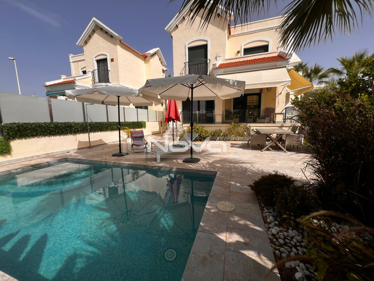 Відремонтована окрема вілла в Лос-Дольсес з приватним басейном та видом на море. Представляємо цю ексклюзивну окрему віллу, розташовану в престижному житловому районі Лос-Дольсес (Оріуела-Коста). Нерухомість була повністю відремонтована з використанням високоякісних матеріалів та пропонує сучасний та елегантний стиль, що поєднує комфорт та дизайн. У власності є: 3 просторі та світлі спальні. 2 відремонтовані ванні кімнати. Простора вітальня з прямим виходом на вулицю. Повністю обладнана сучасна кухня. Мармурові підлоги по всій території. Електрична система опалення. Південна орієнтація, що забезпечує природне освітлення протягом усього дня. Приватний басейн та доступ до загального басейну. Паркомісце включено. Вид на море з території. Завдяки своєму привілейованому розташуванню, оточеному всіма зручностями, зонами відпочинку та невеликій відстані від пляжів Оріуела-Коста, ця вілла ідеально підходить як постійне місце проживання, будинок для відпочинку або високодохідна інвестиція.